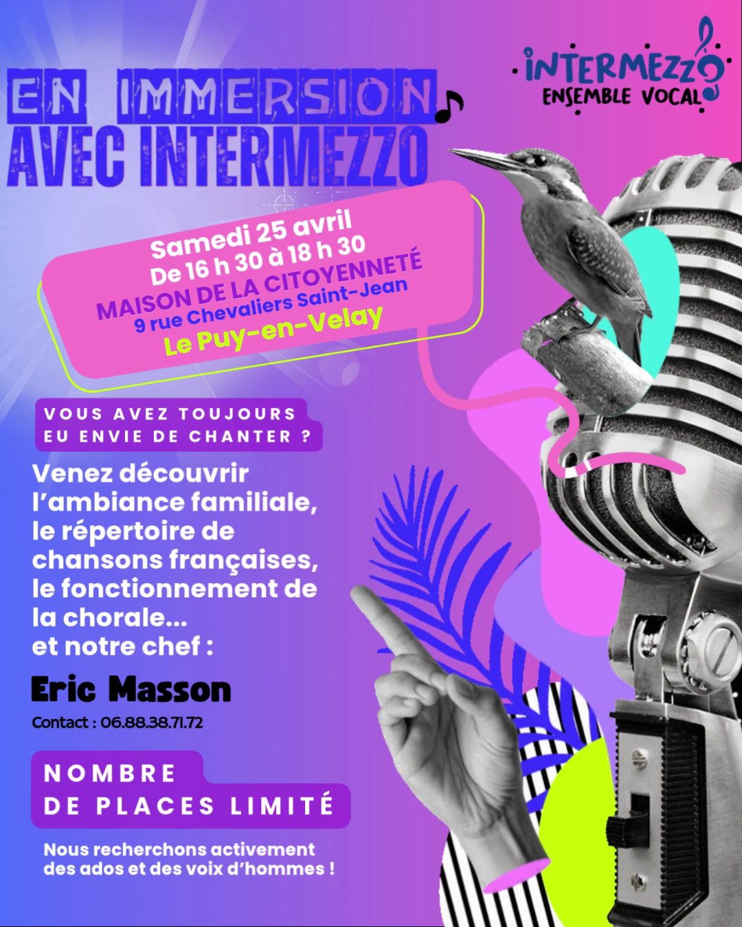 Créée en septembre 2008, la chorale INTERMEZZO regroupe une cinquantaine de passionnés de chants qui partagent des valeurs fortes de partage, d’entraide et de convivialité, formant une véritable « famille musicale ».